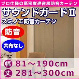 プロ仕様防音カーテン サウンドガード2 音漏れ防止共布なしタイプ (幅81?190cm・丈281?300cm)◆スミノエ【送料無料】【代引不可】【smtb-MS】 「サウンドガード2」は従来の形ばかりの防音を謳ったカーテンとは一線を画す商品です。カーテン地と高密度の遮音層、塩ビ層(エンボス加工)を一体構造にしたカーテンです。既設のガラス戸と組み合わせる事により、二重サッシと同程度の防音効果が得られます。遮光性にも優れていますので、ホームシアタールームにもお勧め (更新日時:2011/03/08 18:18) Supported by 楽天ウェブサービス |